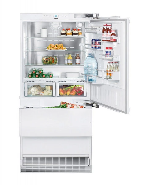 Встраиваемая модель Liebherr ECBN 6156 с системой Nofrost и отделением HydroSafe. Холодильник с дверным упором слева и двумя выдвижными морозильными ящиками имеет общий объем 585 литров. Имеется возможность предварительного заказа модели с правым дверным упором. Устройство с регулируемыми ножками и цоколем встраивается в шкаф или нишу с жестким креплением декоративного мебельного фасада по системе door on door, позволяющим открывать дверцу на большой угол 115°. Для хранения продуктов при температуре около нуля градусов предусмотрена зона свежести BioFresh с собственным внутренним освещением и двумя ящиками HydroSafe с регулировкой влажности. Управление прибором осуществляется при помощи электронной сенсорной системы управления с дисплеем MagicEye класса Premium с цифровой индикацией температуры. В холодильной камере предусмотрена система автоматического размораживания, а в морозильнике — система No Frost. Они предотвращают появление наледи на стенках и продуктах и упрощают очистку камер. Режимы суперохлаждения и суперзамораживания с автоматическим отключением помогут подготовить отделения к размещению новой порции свежих продуктов. Для получения кубиков льда служит ледогенератор IceMaker с постоянным подключением к воде. Компрессор с пониженной вибрацией делает работу прибора практически бесшумной, что повышает комфорт эксплуатации.