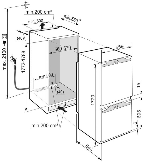 Встраиваемый холодильник с морозильной камерой Liebherr ICN 3376с функцией NoFrost.
