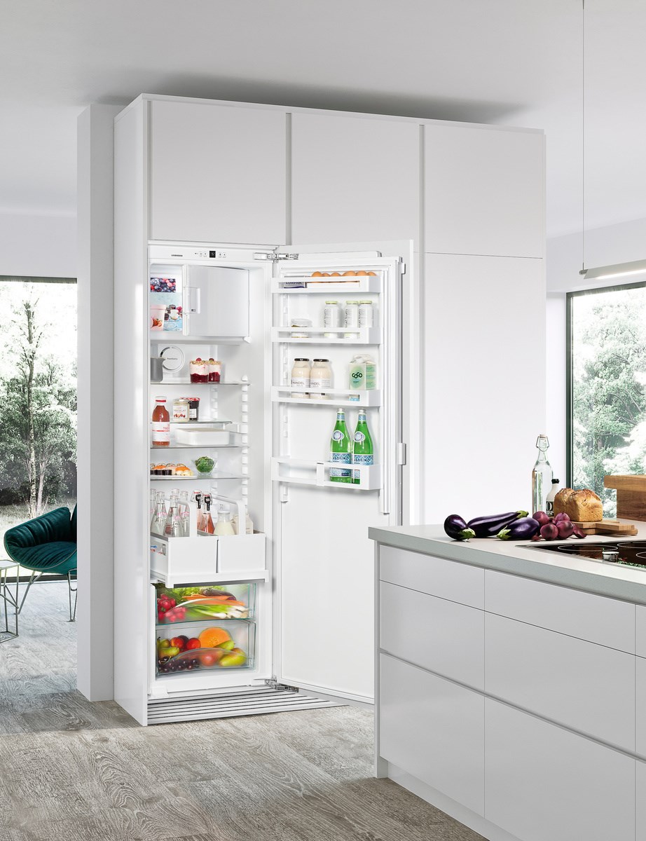 Встраиваемый холодильник Liebherr IKF 3514 с выдвижным контейнером с корзинами для бутылок.