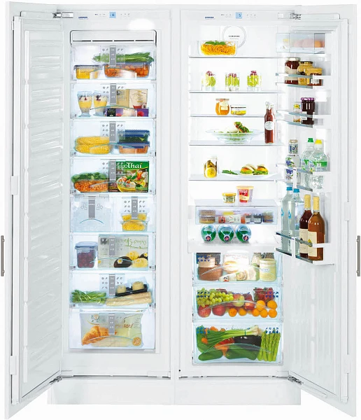 Встраиваемая модель Liebherr SBS 70I4 общим объёмом 592 л. Установку модели в шкаф или нишу облегчает жесткое крепление двери по системе door on door, обеспечивающее большой угол открывания 115°, регулируемые ножки и регулируемый цоколь. Благодаря конструкции Side-by-Side холодильная и морозильная камеры расположены рядом друг с другом, поэтому достаточно вместительные. Каждая часть оснащена дверцей и работает независимо от другой. Отсутствие воздухообмена между отделениями защищает от смешения ароматов. С помощью электронного управления можно легко настроить температуру и все необходимые функции. Имеется специальная секция BioFresh с температурой 0°C, где можно создать оптимальные условия для продуктов, требующих особого уровня влажности, например, овощей и гастрономии.