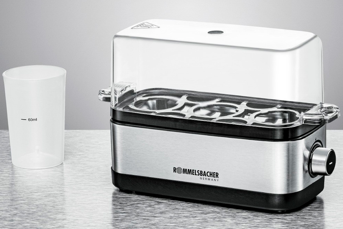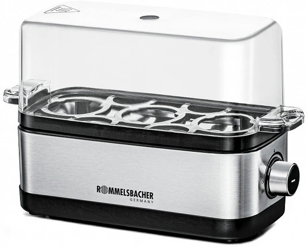 Яйцеварка Rommelsbacher ER 300 - компактное устройство, которое позволяет одновременно готовить до 3 яиц.