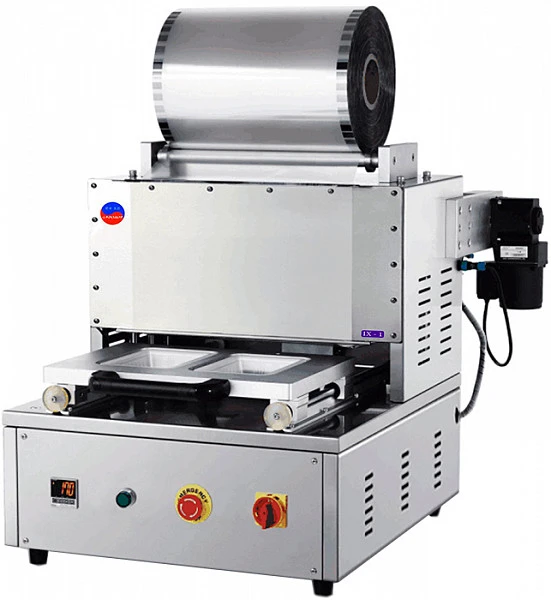 Полуавтоматический запайщик контейнеров Indokor IX-1 предназначен для запайки полимерных лотков плёнкой. Цикл упаковки (прижатие, запайка) производится автоматически, загрузка и выемка контейнеров осуществляется вручную. Машина работает по принципу: только запайка и обрезка по контуру лотка.