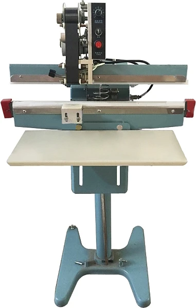 Запайщик приводится в действие посредством ножной педали. Для упрощения работы оператора имеется регулируемая по высоте подставка для пакетов.