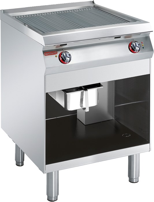 Гриль-сковорода непосредственной жарки двухсекционный напольный с ребристой жарочной поверхностью размером 645*525 мм из Fe510D стали с матовой отделкой- функциональный элемент линии Gamma.