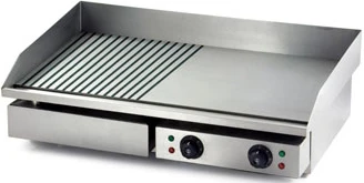 Комбинированная рабочая поверхность (2/3 гладкая, 1/3 рифленая) из стали толщиной 8 мм с 2 зонами нагрева