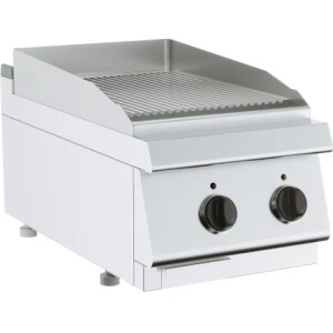 Гриль-сковорода электрическая настольная оснащена рифленой стальной (ST 52) поверхностью с 1 зоной нагрева, бортиком с 3-х сторон толщиной 3мм, вместительным жиросборником. Толщина стали рабочей поверхности - 15мм.