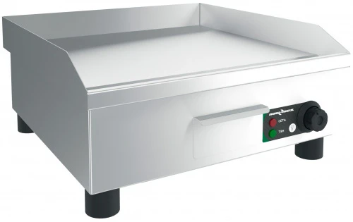 Включением и выключением нагревателей управляет терморегулятор оснащенный термодатчиком. Для включения поверхности жарочной поверните терморегулятор и установите на нем необходимую для приготовления температуру, должен загореться красный индикатор на панели управления. Пока горит индикатор работы ТЭН, температура не достигнута. В момент достижения необходимой температуры ТЭНы выключатся и индикатор работы ТЭН погаснет, при остывании поверхности терморегулятор включит ТЭНы, индикаторная лампа загорится и снова поверхность нагреется до необходимой температуры выставленной на терморегуляторе.