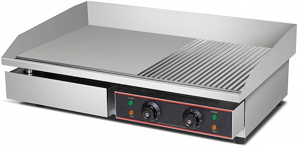 Жарочная поверхность снабжена по периметру бортиками для предотвращения разбрызгивания жира.