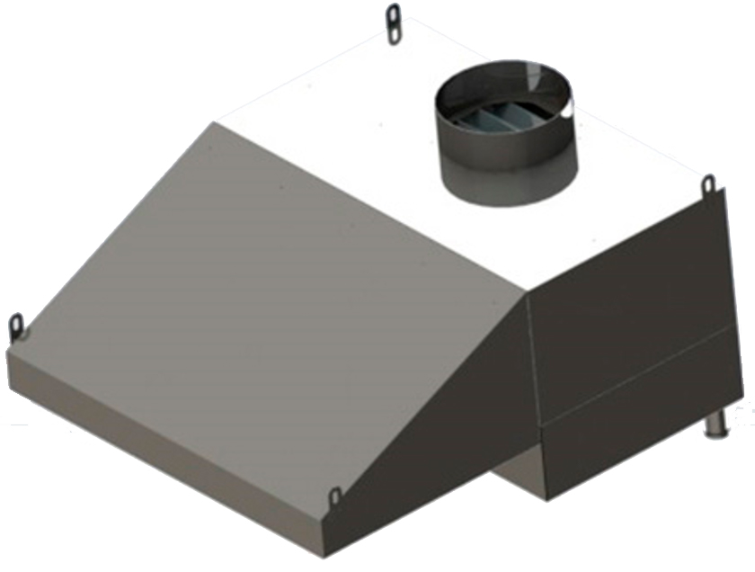 • Лабиринтная конструкция вытяжного зонта с гидрофильтром обеспечивает высокий уровень фильтрации и снижает расходы на чистку воздуховодов. Распыляемая через форсунки водяная завеса гасит 100% искр.