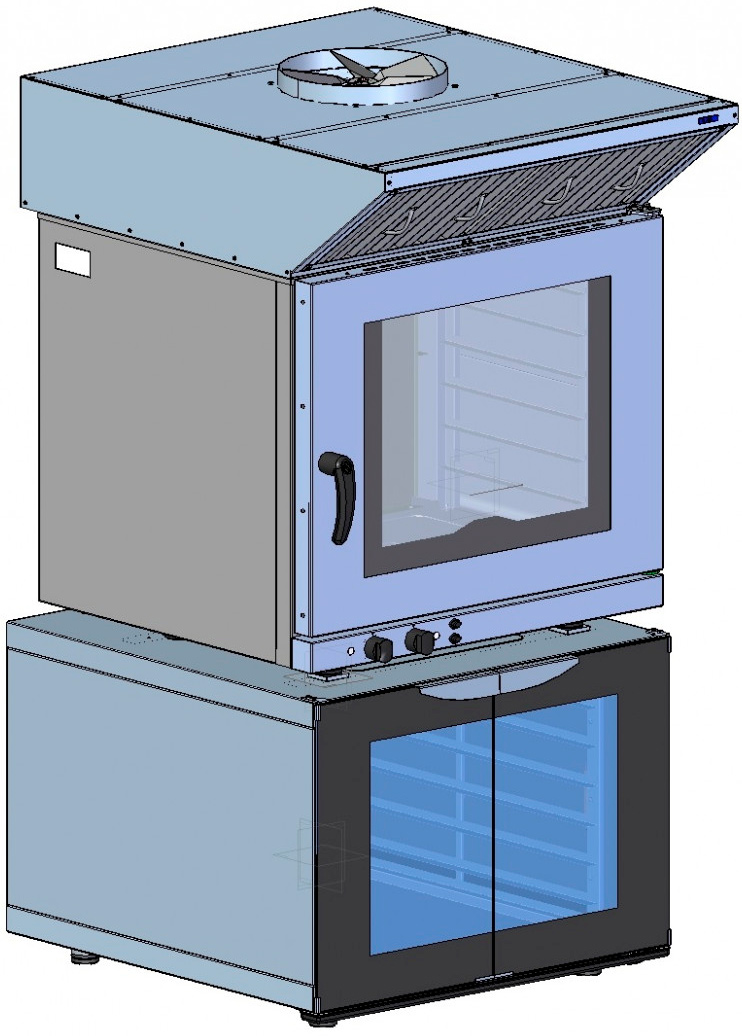 - Зонт ЗВВ-6-6/4 устанавливают на конвекционную печь КЭП-6 и подсоединяют к конвекционной печи с помощью кабеля питаня (2 м, с заземлением).