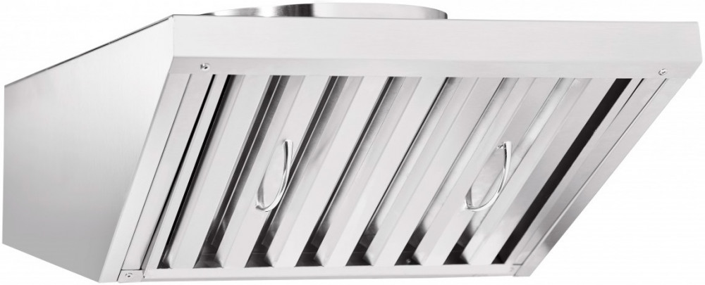 • Принцип действия: разогретый воздух, насыщенный парами масла, жира и воды, всасывается вентилятором и проходит через лабиринтные фильтры. Затем пары масла, жира и воды, содержащиеся в воздухе, конденсируются на фильтре благодаря температурному перепаду и стекают в герметичную ванну - жиросборник - расположенную в корпусе зонта. Ванна зонта имеет сливную трубку с резьбой G 1/2'', к которой необходимо подсоединить шаровой кран для слива жидкости.