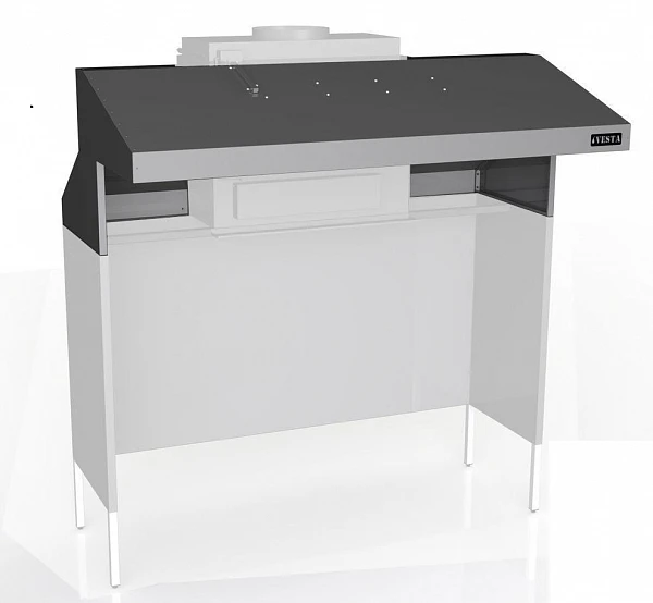 Зонт вытяжной Vesta V2 является частью комплекса K2 комплексов Vesta - решения, позволяющего разместить несколько единиц оборудования под одним искрогасителем (гидрофильтром).